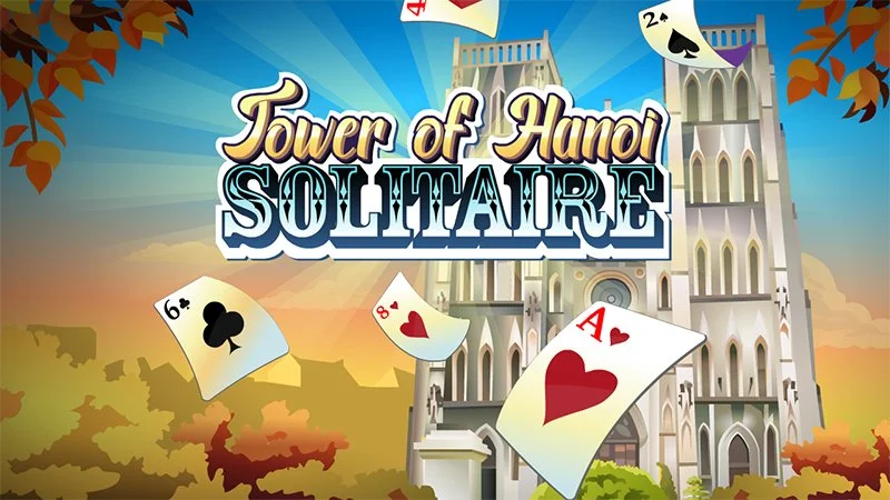 Tower of Hanoi puzzle as card game. Move all cards in a single column from 9 descending down to A. You can only move a card onto a higher ranked card or an empty column.